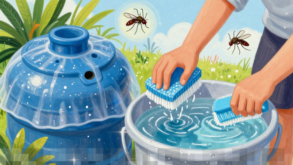 Salah satu cara paling efektif untuk mencegah perkembangbiakan nyamuk adalah dengan menguras bak air secara berkala, minimal sekali seminggu. Proses ini mencakup: